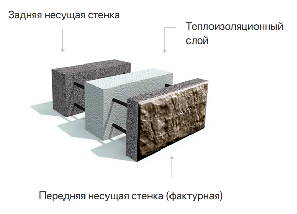 Блок представляет из себя готовый элемент стены, не требующий отделки фасада.